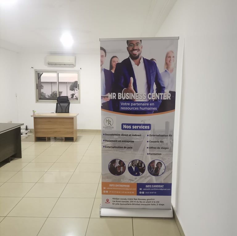 HR BUSINESS CENTER est une entreprise spécialisée en ressources humaines basée à Abidjan, Cocody. Nous offrons des services de recrutement, placement, externalisation RH et paie, conseil en gestion des ressources humaines et formations professionnelles. Notre mission est d’accompagner les entreprises dans l’optimisation de leur gestion RH et de connecter les talents aux meilleures opportunités.